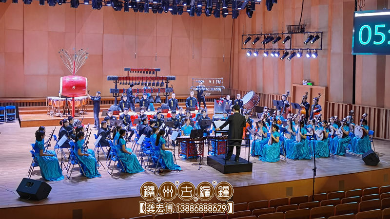 地質(zhì)大學(xué)編鐘國樂團(tuán)攜隨州古編鐘公司28件曾侯乙編鐘參加“湖北省第七屆大學(xué)生藝術(shù)節(jié)”活動(dòng)。