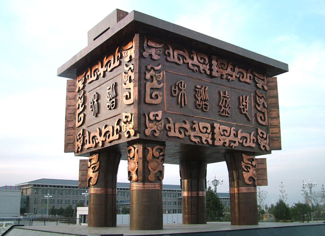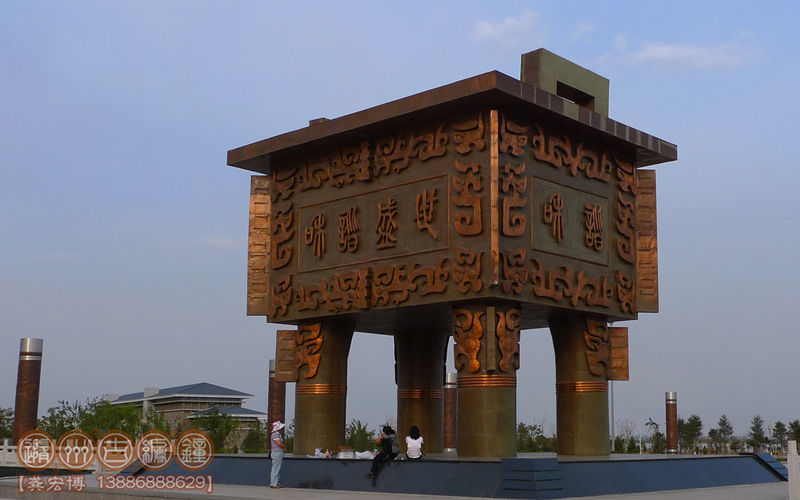 簡介:2008年,隨州市古編鐘文化發(fā)展有限公司為寧夏銀川市人民政府制作了高達12米的“和諧盛世寶鼎”,成為城市的一大景觀,該鼎用進口優(yōu)質(zhì)紫銅板鍛造而成,它重達48噸。在國內(nèi)這樣規(guī)模的大鼎尚屬第一。