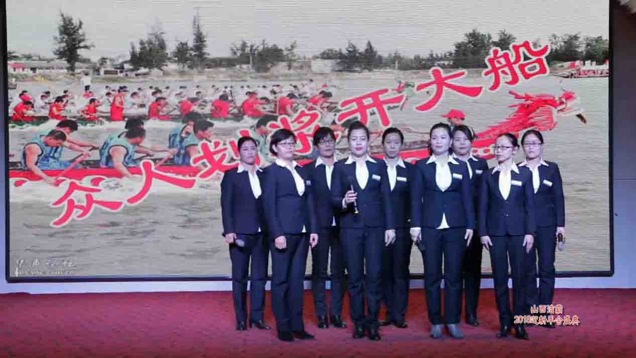 在舞蹈《紅紅對聯(lián)火火的歌》的喜慶氛圍中拉開了年會序幕