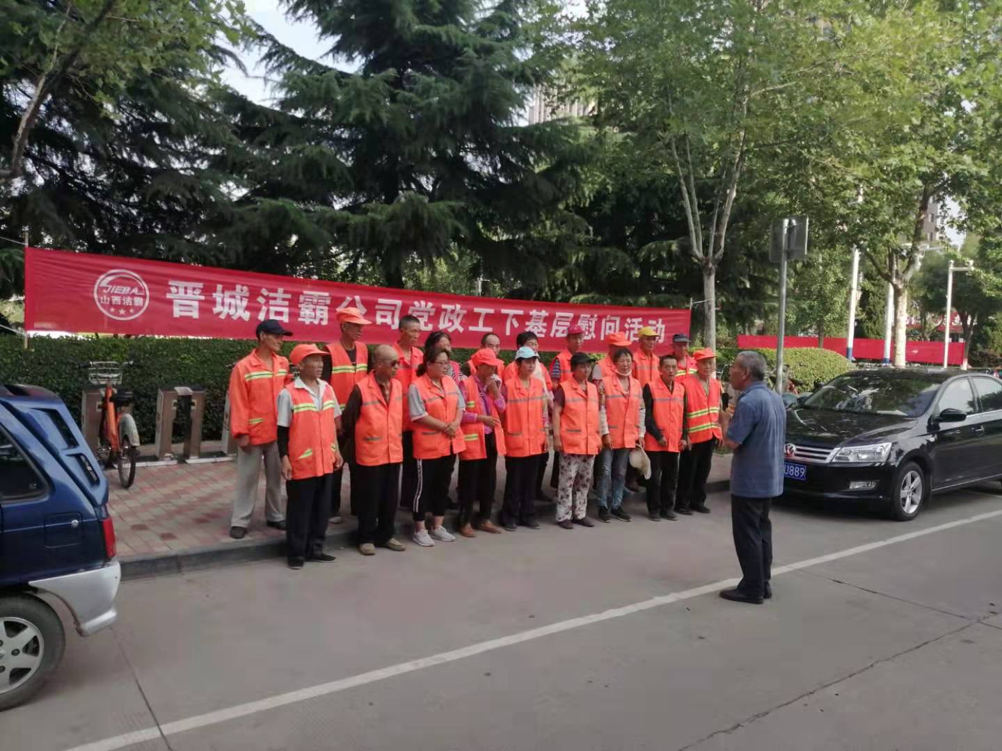 “大家辛苦了!”工會崔主席面對站在對面的滿臉汗水的環(huán)衛(wèi)員工深深一鞠躬,向高溫下奮戰(zhàn)在一線的環(huán)衛(wèi)員工們表示感謝。崔主席說,大家從事的環(huán)衛(wèi)工作雖苦、臟、累,但是大家心靈美,創(chuàng)建全國文明城市有咱的功勞,這是咱們潔霸的榮耀!他叮囑隨行的保潔部主管,在炎熱的夏季要時刻關心一線的員工,多傾聽員工的心聲,積極為他們做好后勤保障工作。他囑咐環(huán)衛(wèi)員工們,在高溫下作業(yè)要做好防暑降溫工作,確保自身健康安全。工作中要積極配合主管,共同把工作干好。