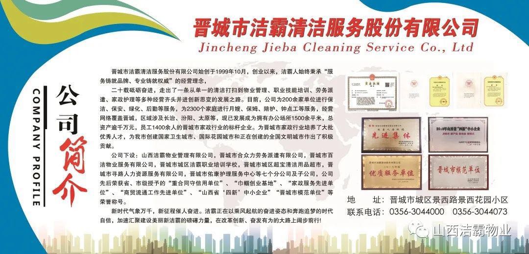 20年砥礪奮進(jìn),從一個(gè)租賃兩間辦公室名不見(jiàn)經(jīng)傳的小公司,成長(zhǎng)為擁有擁有辦公場(chǎng)所1500余平米,總資產(chǎn)逾千萬(wàn)元,員工1500余人的晉城市家政行業(yè)的標(biāo)桿企業(yè),潔霸完成了精彩跨越,“做清潔行業(yè)的霸主”的發(fā)展定位從未改變。