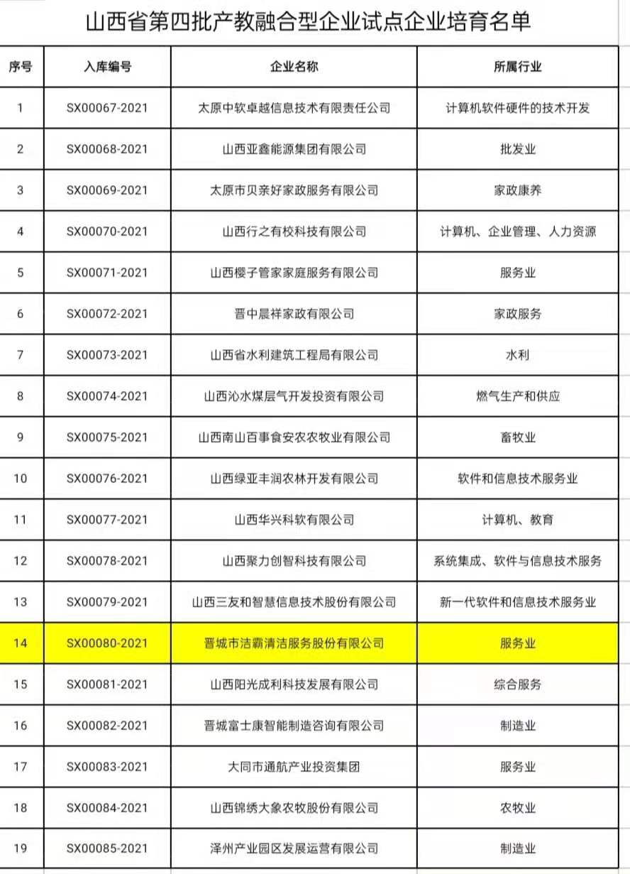 按照遴選培育原則和程序,通過(guò)企業(yè)基礎(chǔ)資料初審、“互聯(lián)網(wǎng)+現(xiàn)場(chǎng)”答辯、專(zhuān)家組評(píng)審等工作,遴選確定晉城市潔霸清潔服務(wù)股份有限公司納入省級(jí)建設(shè)培育庫(kù)。