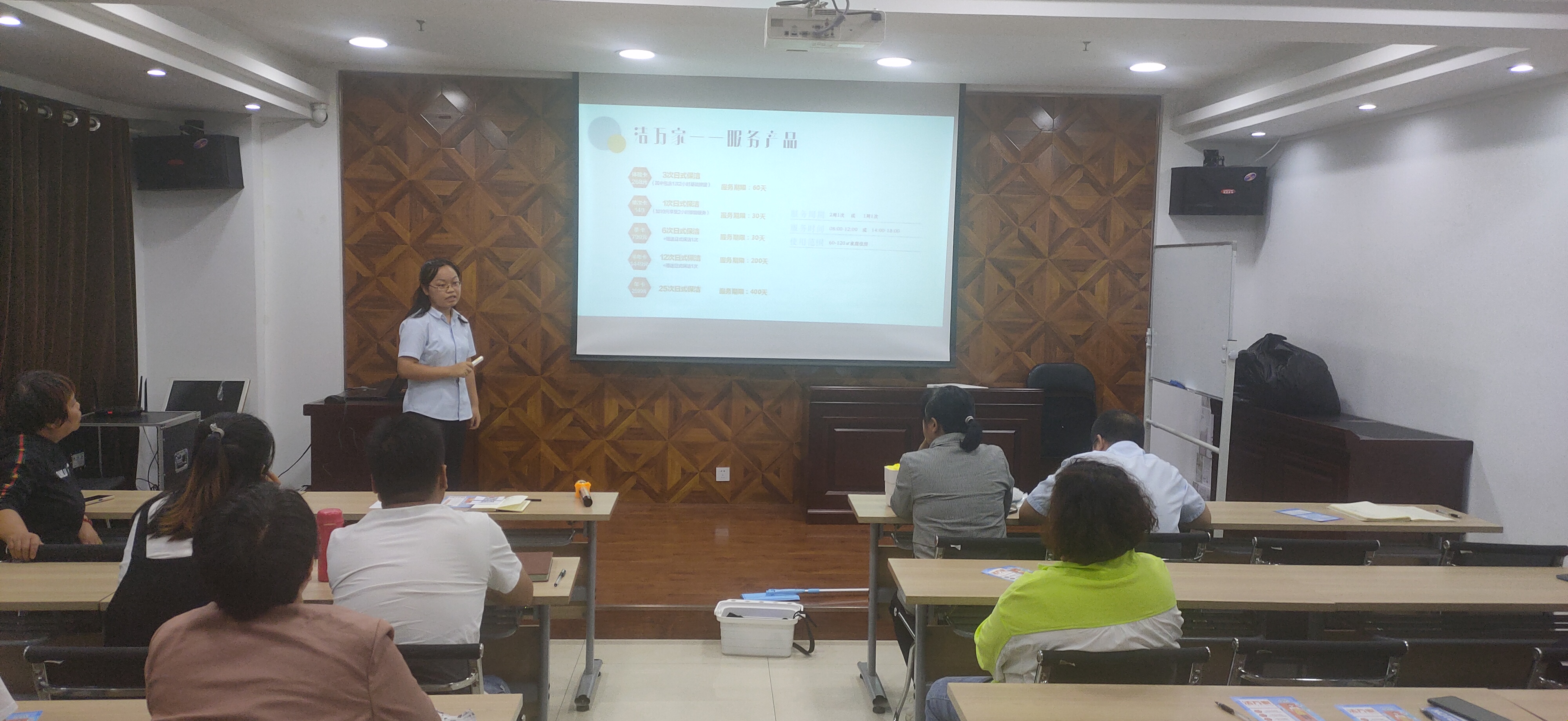 隨后由公司人力資源部負責人司夢琴對“潔萬家”日常保潔產(chǎn)品進行了分類介紹,此外還介紹了產(chǎn)品推廣獎勵方案和推廣話術(shù),對大家日后推廣過程中會遇到的客戶提出的各種問題進行了預(yù)設(shè)并一一詳細作答。