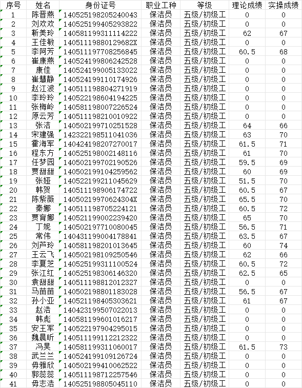 晉城市潔霸清潔服務股份有限公司職業(yè)技能等級認定中心現(xiàn)將2024年8月4日認定人員成績公示如下: