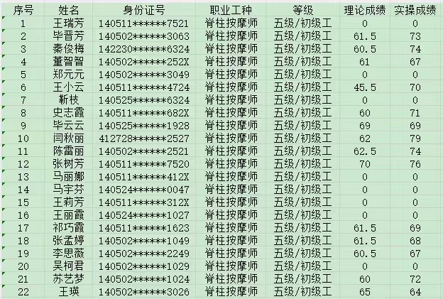 2024年10月13日第11批保健按摩師初級認(rèn)定人員成績公示