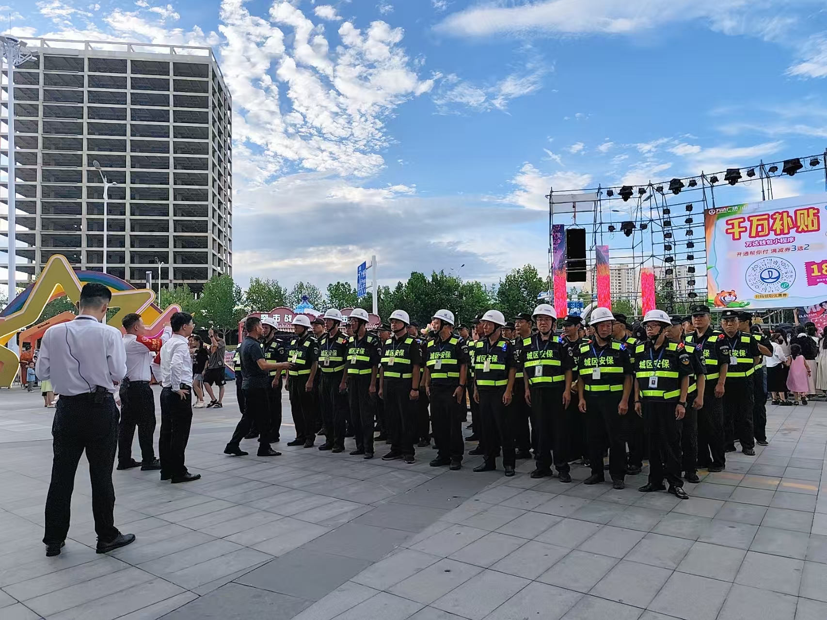 活動期間,城區(qū)保安人員按照既定方案,每天晚上6點到崗到位,配合公安、消防等部門做好秩序維護、交通疏導(dǎo)及服務(wù)保障等工作。出入口崗位的保安負(fù)責(zé)引導(dǎo)群眾有序進出,舞臺周邊的保安重點維護觀眾秩序,防止擁擠、踩踏等危險情況發(fā)生。盡管每天晚上工作時間長達6小時,他們時刻保持警惕,沒有絲毫放松。現(xiàn)場人流量一度突破萬人次,但執(zhí)勤保安始終用規(guī)范的動作、耐心的態(tài)度引導(dǎo)人流,以嚴(yán)謹(jǐn)?shù)墓ぷ髯黠L(fēng)和飽滿的精神狀態(tài)為活動保駕護航。