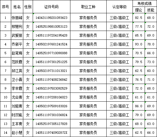 山西潔霸清潔服務集團股份有限公司職業(yè)技能等級認定中心現將2025年9月13日認定人員成績公示如下: